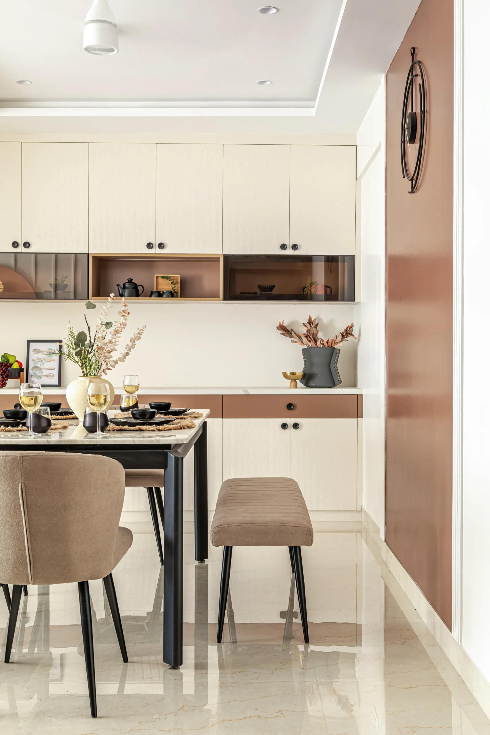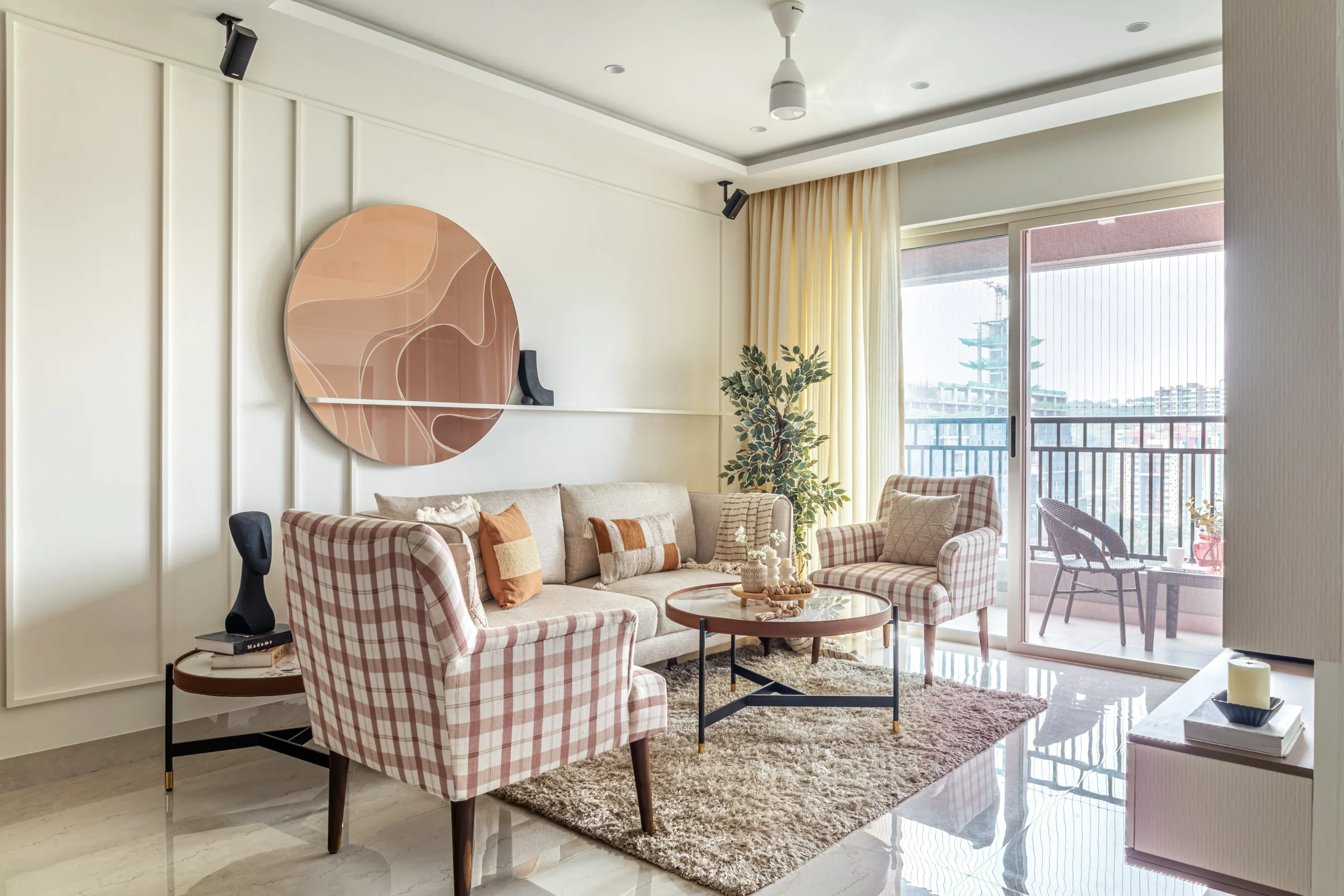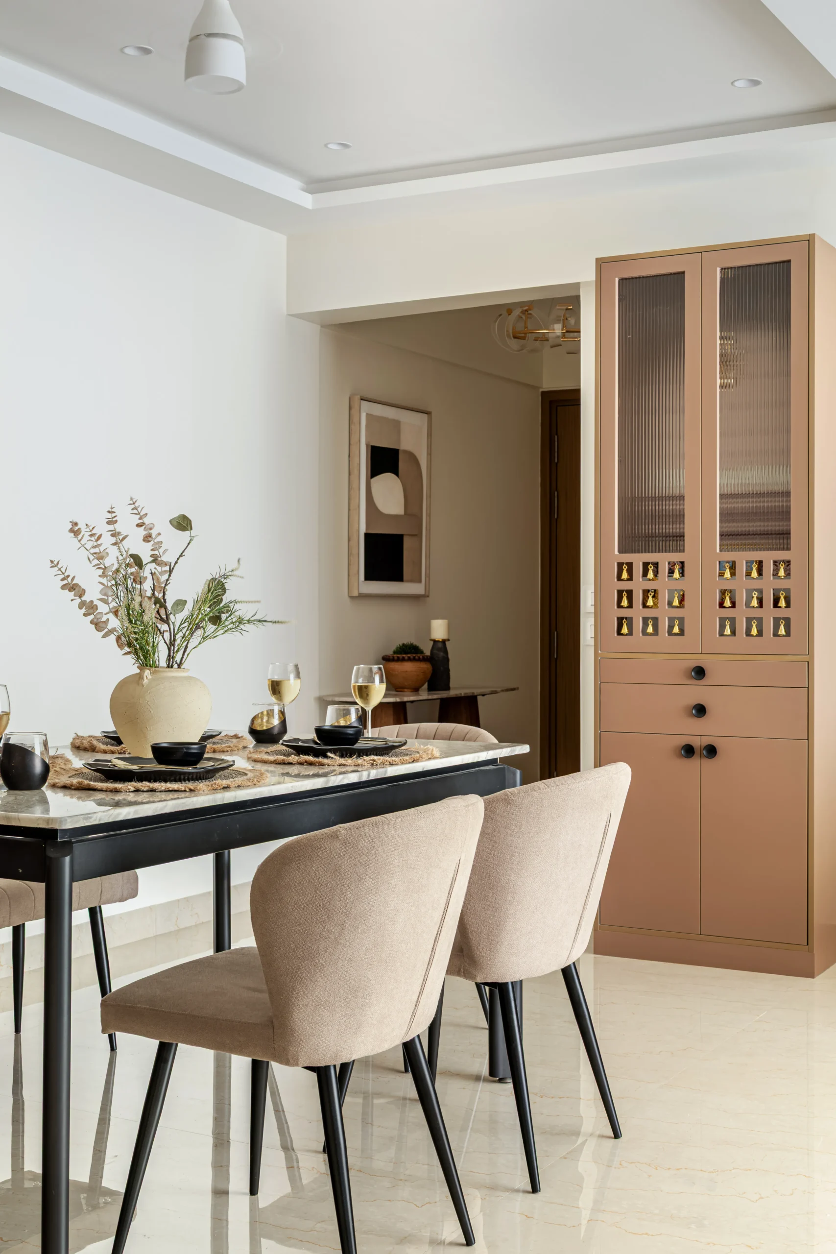 The Muted Muse- It means a quiet source of inspiration — a thoughtfully designed space that implies timeless beauty, mindful living, and soft luxury rather than trend-driven design. This 3BHK apartment feels calm, grounded, and gently inspiring. Colors are muted but layered—warm beige, soft browns, lilac, dusty sage, and pale taupe. Just like our client’s personality: Nothing is loud; every element feels intentional and soothing.